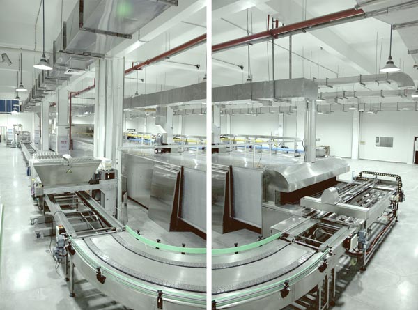 通過(guò)引進(jìn)日本、臺(tái)灣全自動(dòng)面點(diǎn)、焙烤生產(chǎn)線、恒溫恒濕醒發(fā)等先進(jìn)生產(chǎn)設(shè)備,優(yōu)化升級(jí)生產(chǎn)工藝流程、逐步淘汰并更新落后的生產(chǎn)設(shè)備,全面提升車(chē)間機(jī)械化、標(biāo)準(zhǔn)化、工業(yè)化設(shè)施,穩(wěn)定產(chǎn)品品質(zhì),進(jìn)一步提高生產(chǎn)效率,推動(dòng)產(chǎn)業(yè)化進(jìn)程,發(fā)揮規(guī)?;б?